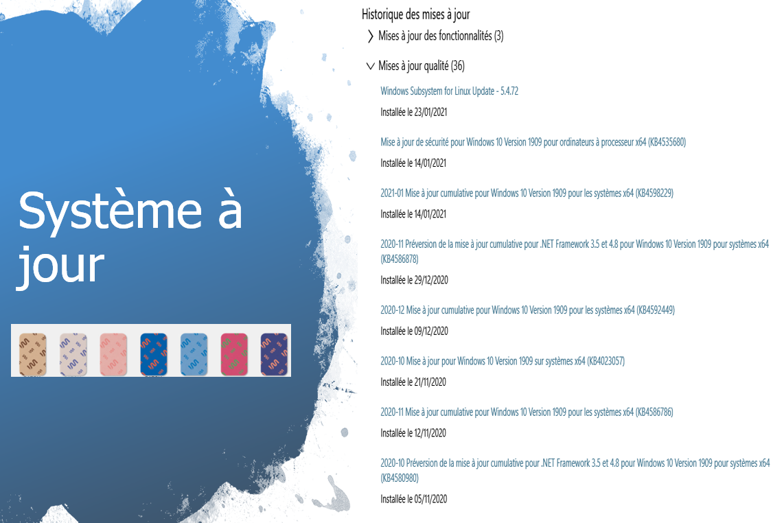 Pour cette règle numéro 3, le télétravailleur doit donc disposer d’un système informatique totalement moderne et à jour: Windows 10 (ou Linux ou Mac) avec tous les correctifs de sécurité installés. Pourquoi ? Parce qu’une machine exposée à Internet vulnérable ou obsolète permettra aux attaquants la compromission initiale, qui ensuite leur permettra de rentrer dans tout le réseau de la cible, comme nous avons vu dans les articles précédents sur la « Cyber Kill Chain ». De même, un système sous Windows 7, ou pire Windows XP, sera une cible facile, car ces systèmes ne bénéficient plus de correctifs de sécurité de la part de Microsoft. Il faut donc traquer toutes les machines qui sont obsolètes ou mal patchées et les éliminer en les remplaçant par un matériel et système d’exploitation récent. De même, il faudra repérer les machines qui ne sont pas à jour des correctifs de sécurité et leur pousser ces correctifs.