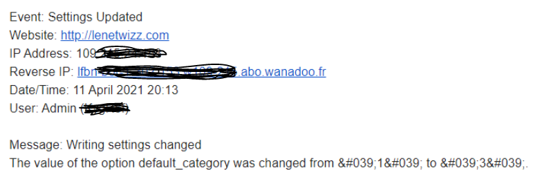 Ici, on a mis en place une adresse fixe avec un reverse proxy sur l’adresse IP de l’admin et également, on a changé son nom, pour ne pas utiliser le compte générique « Admin » et, enfin, on trace tous les changements par l’envoi automatisé d’un e-mail au gestionnaire du site.