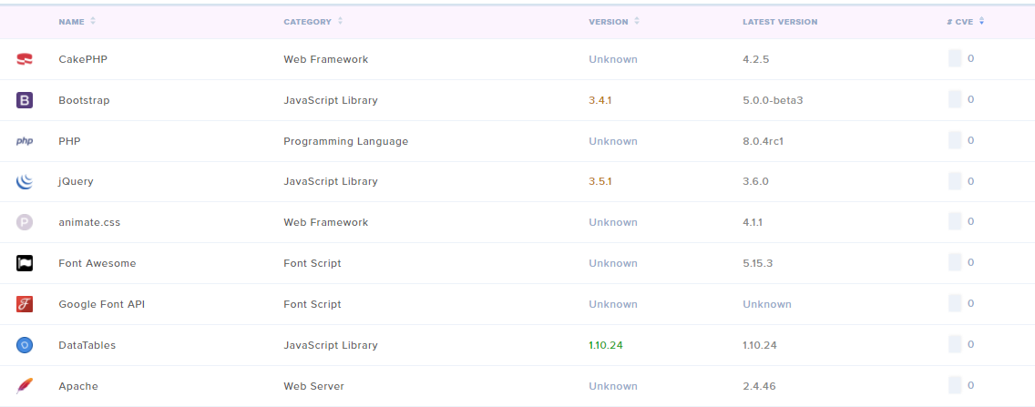 Pas moins de douze technologies sont utilisées ici, dont trois librairies Javascript vulnérables: